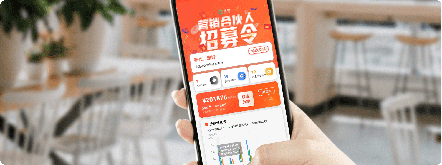 优特陪你一起做好生意,为不同行业角色的企业主和个人,提供更好应用的解决方案服务